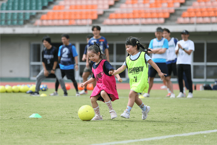 JFLサッカーチーム「ブリオベッカ浦安・市川」によるサッカー教室が、9月28日(土)に柏の葉公園総合競技場で開催されました。社員の子どもたちは、現役選手の指導のもと、笑顔いっぱいでプレーを楽しみました。